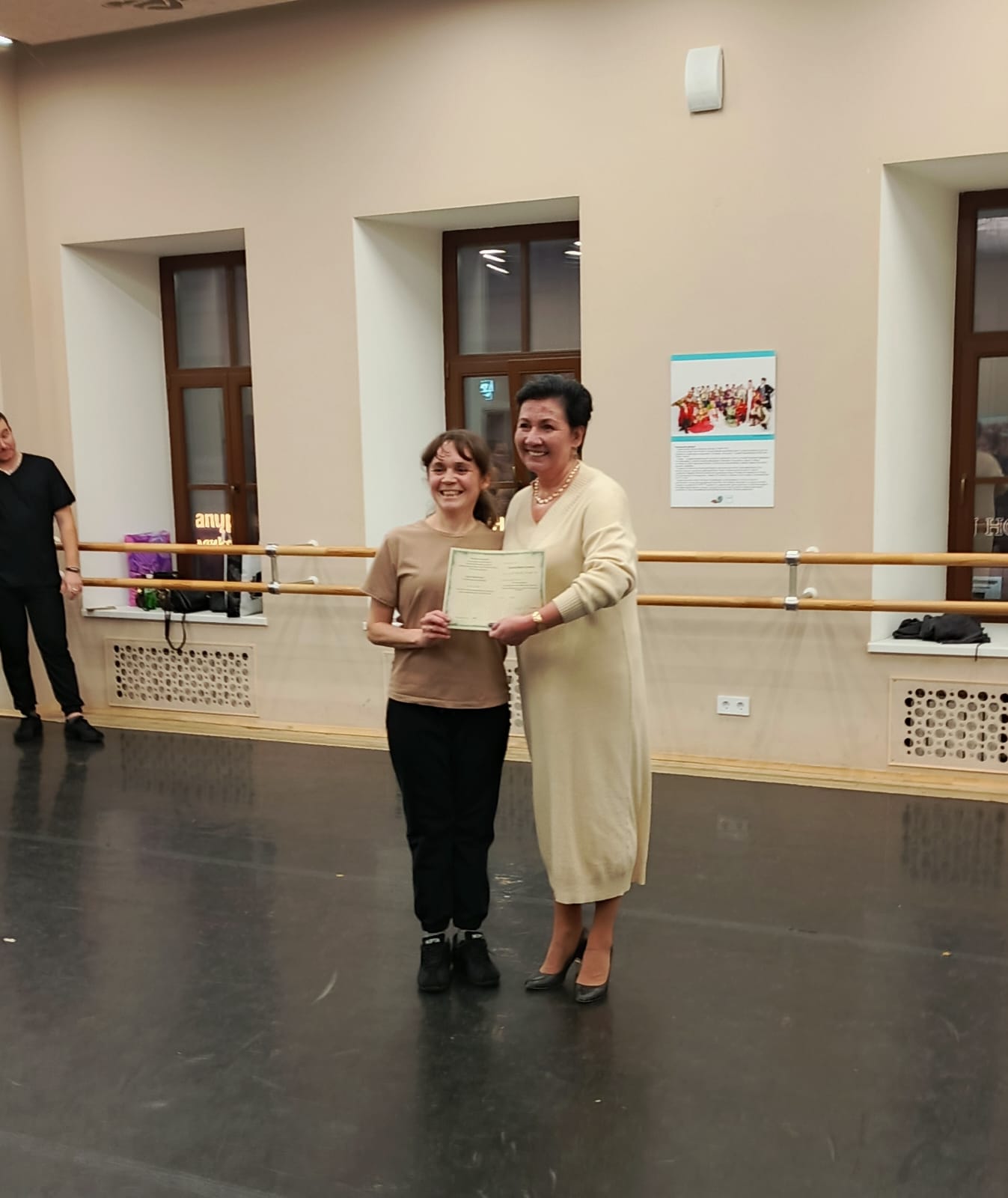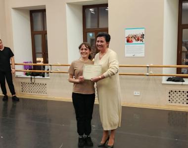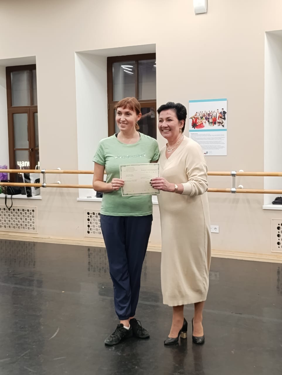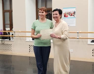 Преподаватели ДШИ им.Ф.Ахмадиева Чистякова С.В. и Гимаева Ф.А. прошли обучение на курсах повышения квалификации по программе «Народно-сценический танец: связь с традициями и современными тенденциями». Обучение проходило 5-6 ноября в ГБУ «Таткультресурсцентр» совместно с ГБУ «Государственный ансамбль песни и танца РТ» г. Казани. Занятия включили в себя теоретические, практические занятия, мастер-классы по работе с хореографическими коллективами, принципы работы с народным костюмом в танцевальном коллективе, использование элементов народных игр в постановочной работе народного танца и другие с ведущими деятелями культуры, хореографами-постановщиками, педагогами-репетиторами ГАПиТ РТ.