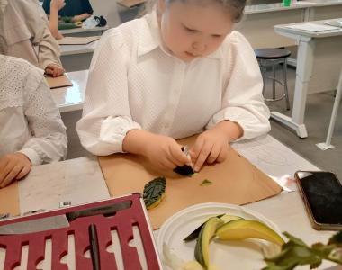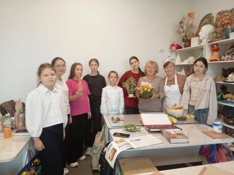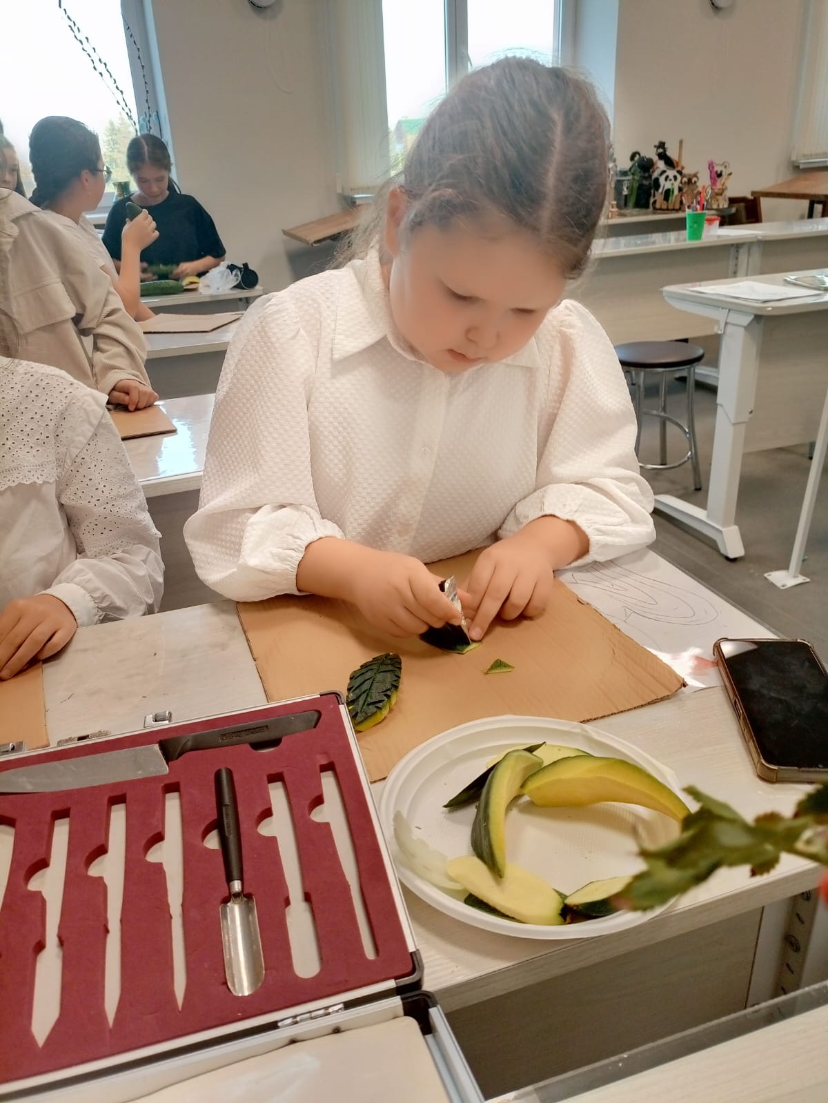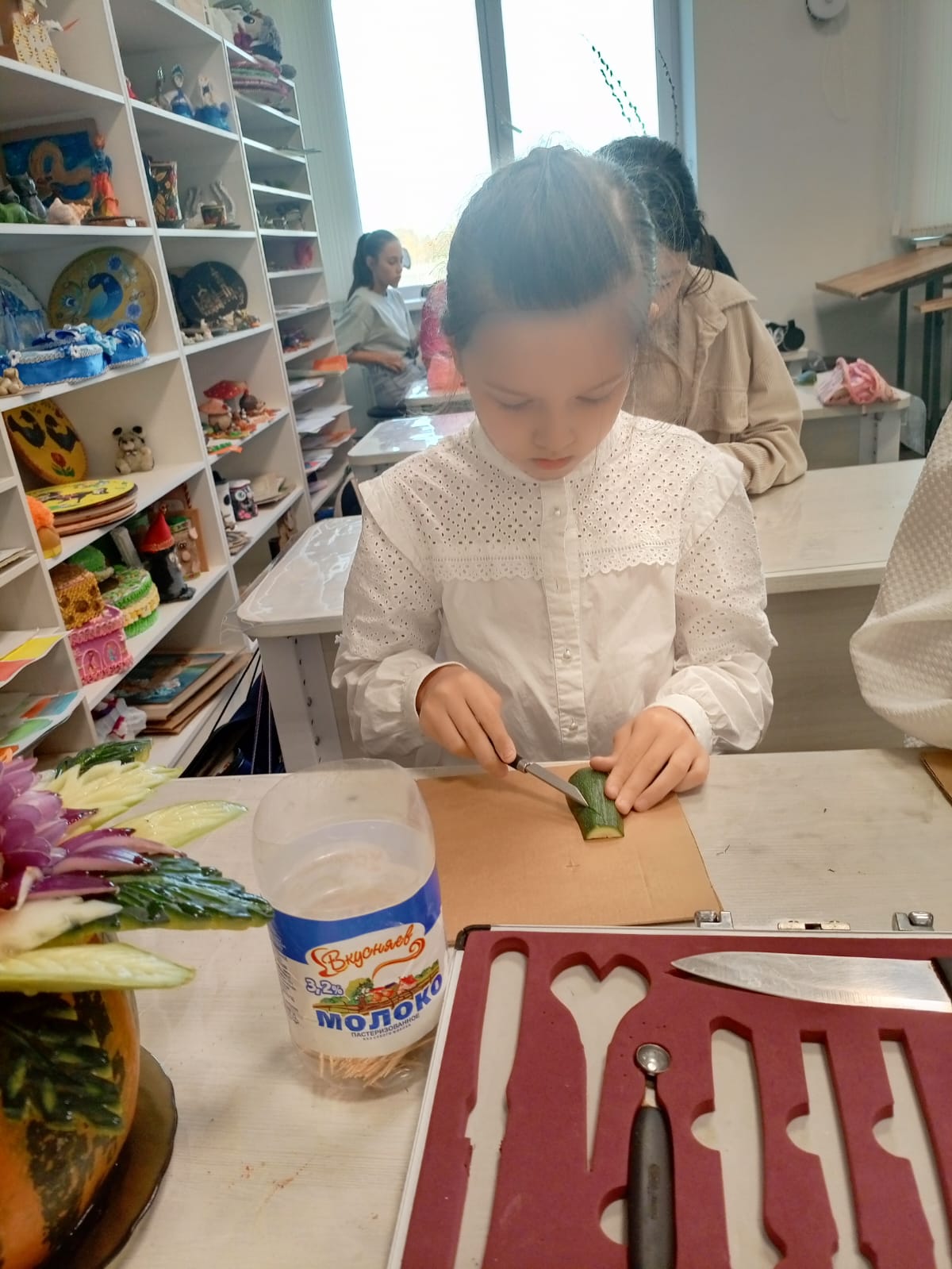 Преподаватель отделения изобразительного искусства Якупова Ф.Х. рассказала об удивительном искусстве карвинга, показала примеры выполненных работ и учила вырезать овощные и