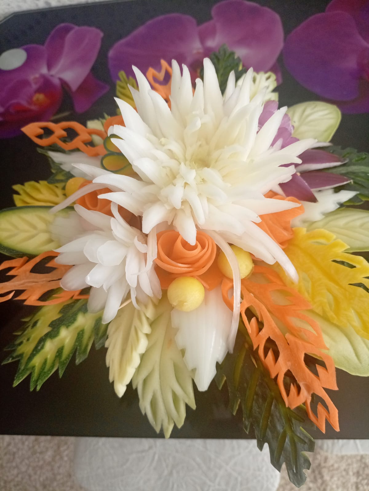 Карвинг - это искусство художественной резки овощей и фруктов, которому может научиться каждый. Красиво оформленное блюдо порадует взрослых и детей, а также будет эффектно смотреться на праздничном столе. У крашения способны преобразить любое блюдо, подчеркнуть тематику стола и художественный вкус повара. Художественная резка из разных материалов - занятие необычное, увлекательное, интересное. Даже самое обычное блюдо, которое мы привыкли видеть на своем столе каждый день, украшенное в стиле карвинга, вызовет аппетит и поднимет настроение всем членам вашей семьи. Из простых овощей и фруктов можно сделать настоящий шедевр!