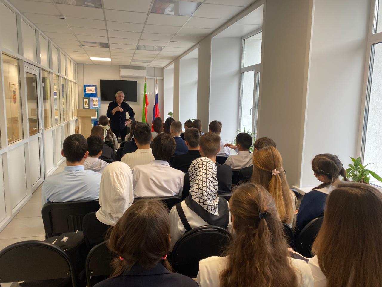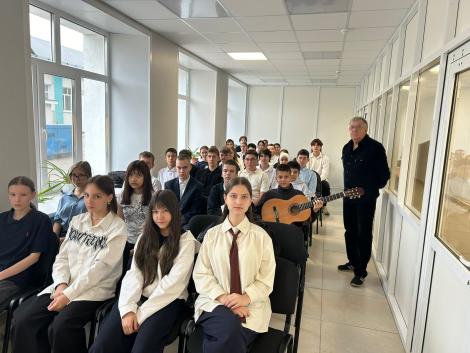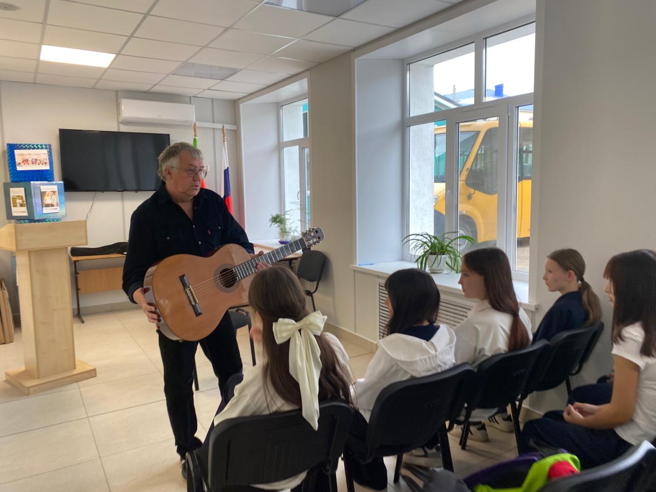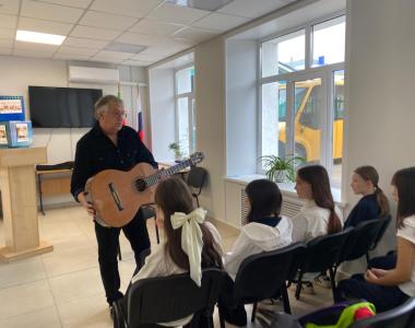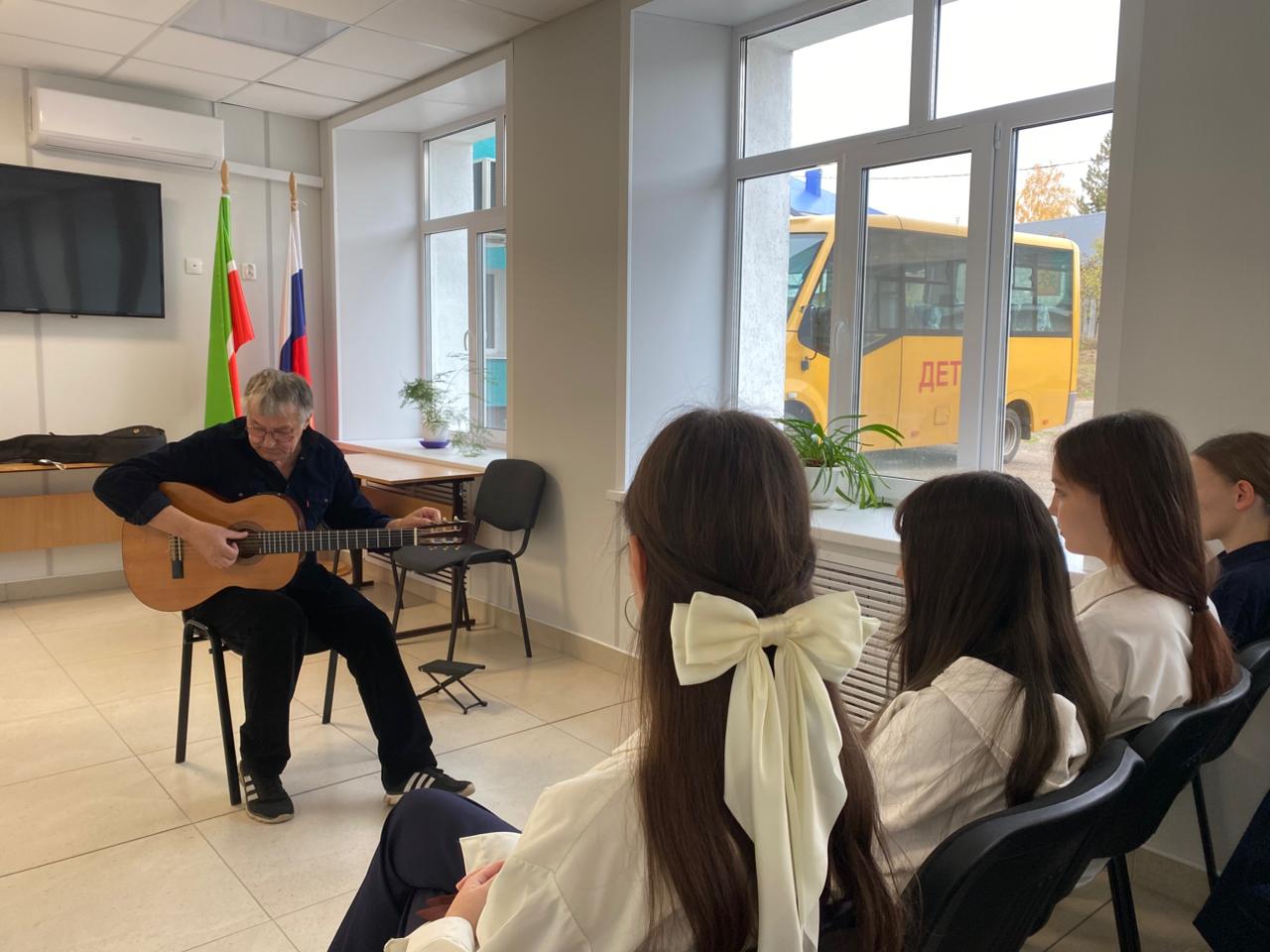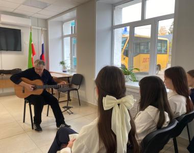В МБОУ «Рыбно-Слободская гимназия Nº1» состоялся мастер-класс «Тонкости игры на гитаре» преподавателя ДШИ им.Ф. Ахмадиева Пузырькова А.В. На мероприятии ребята узнали, из чего складывается мелодия, и какие техники игры существуют. Учащиеся также услышали, как выбрать гитару, какие они бывают, в чем их отличие, познакомились с правилами построения простых аккордов и упражнениями для правой и левой руки.