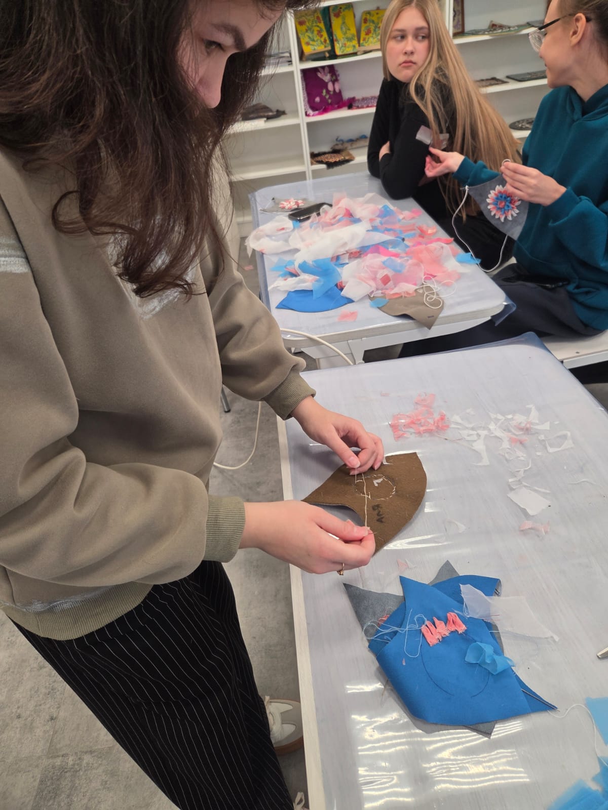 Преподаватель отделения изобразительного искусства Загидуллина Лилия Гаптулловна провела мастер-класс по ушковой технике вышивания для учащихся Рыбно-Слободского агротехнического техникума. Ушковая техника «тырнакалмалау» - это вид объемной аппликации, при котором кусочки ткани сворачиваются особым способом в виде лепесточка или «ушка». Из этих «ушек» выкладываются изображения листьев и цветов.