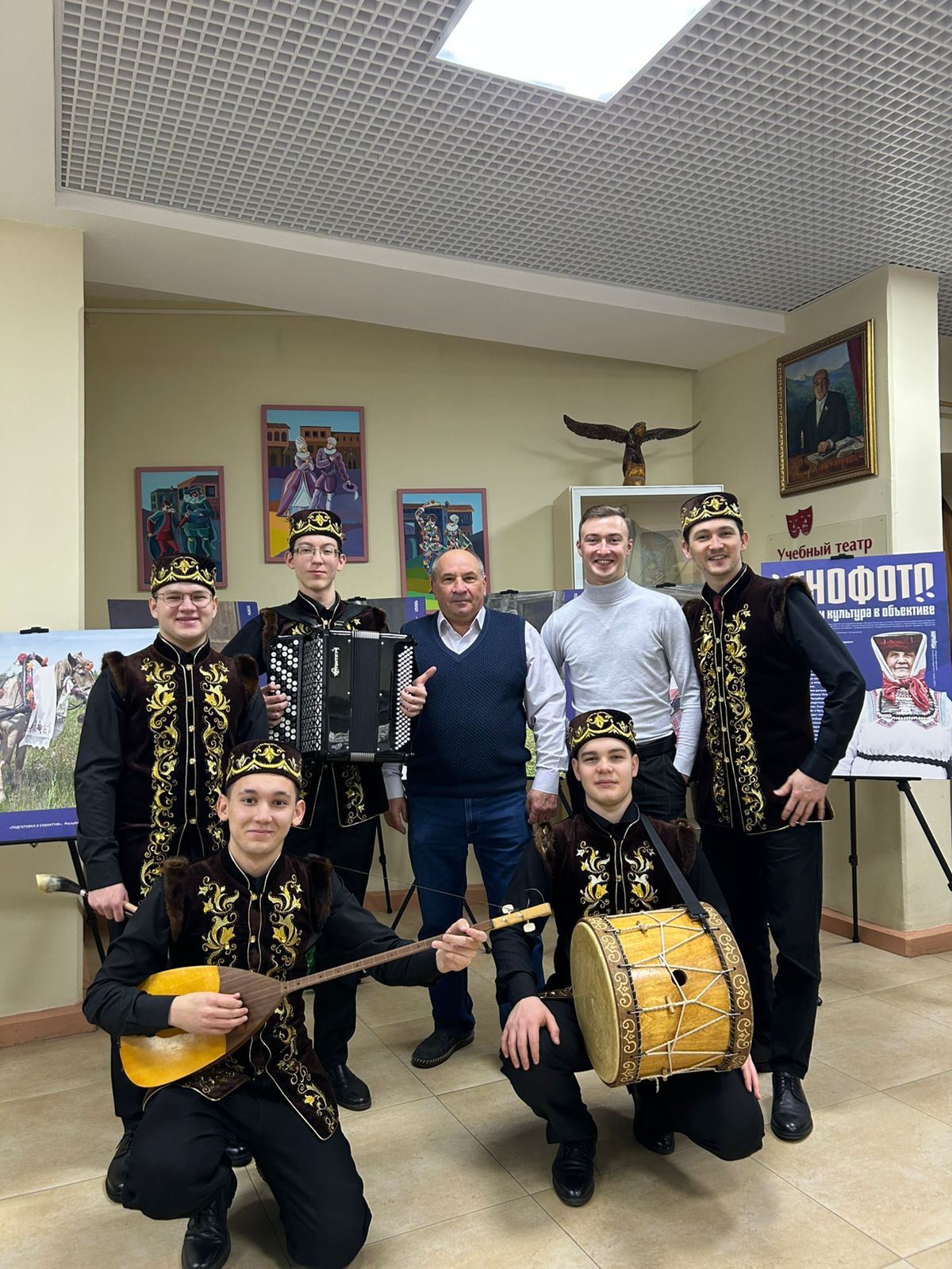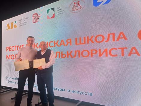 Преподаватели ДШИ им.Ф.Ахмадиева Банницын Владимир Владимирович и Маслов Иван Александрович приняли участие в работе республиканской «Школы молодого фольклориста», посвященный Году зашитника Отечества, 80-летию Победы в Великой Отечественной войне и 110-летию Государственного Российского Дома народного творчества имени В.Д.Поленова, которая прошла на базе Елабужского колледжа культуры и искусств 24-25 ноября 2025 г. в форме семинара-практикума.