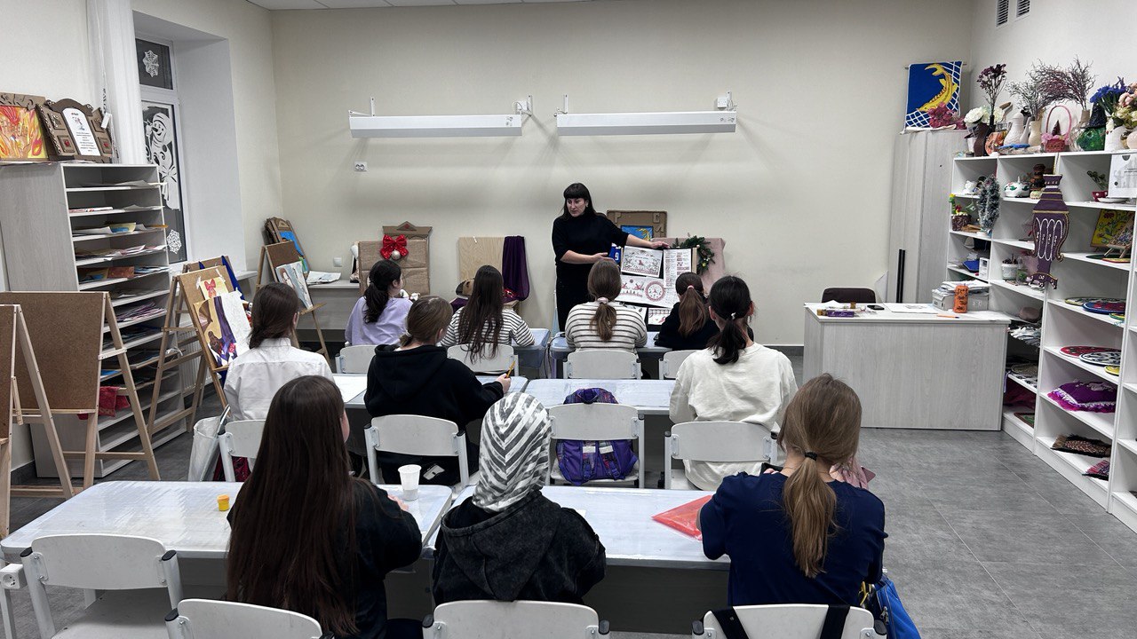 В ДШИ им.Ф.Ахмадиева прошел урок прикладной композиции преподавателя Загидуллиной Лилии Гаптулловны по Мезенской росписи.
