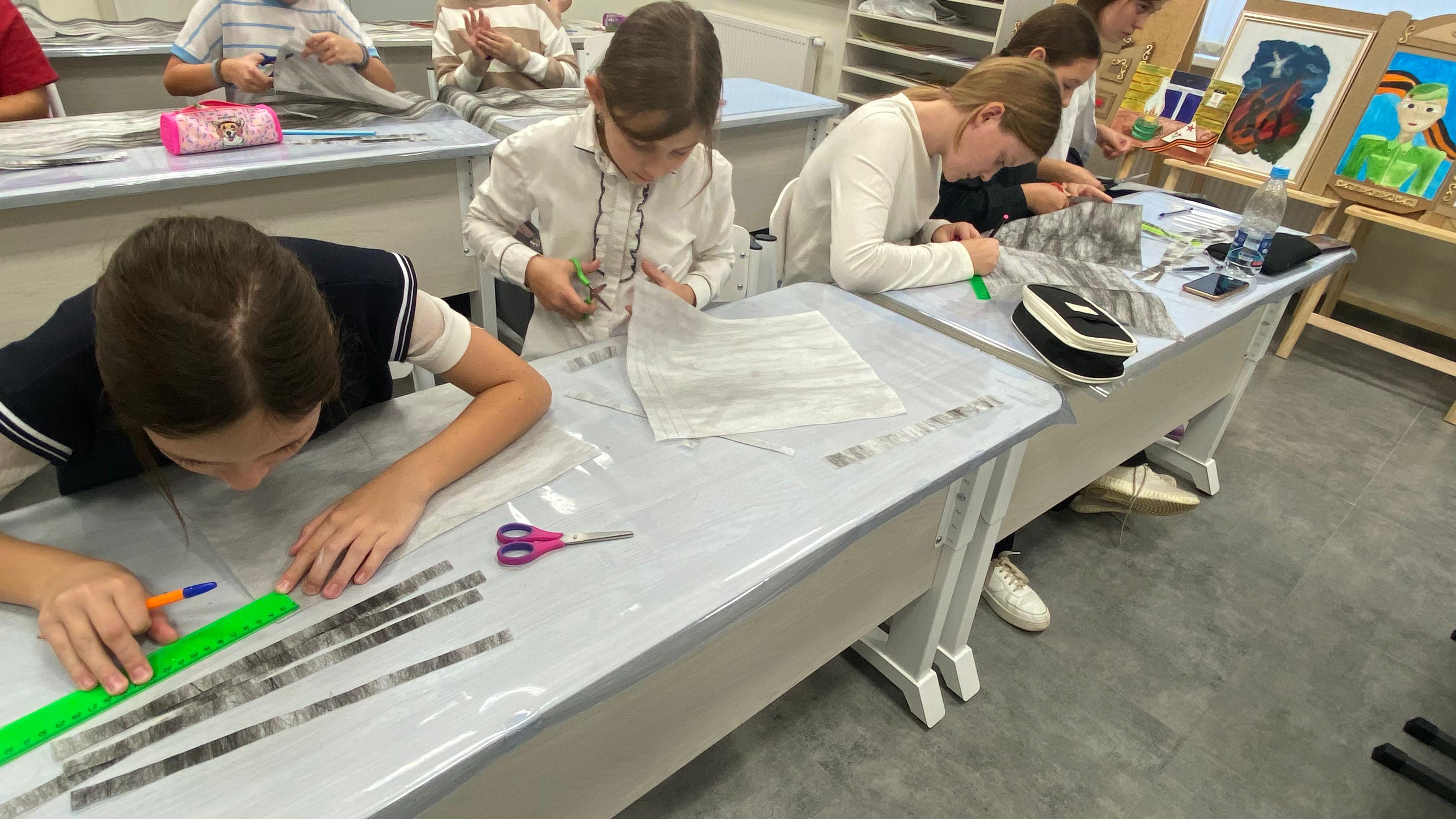 На днях в нашей школе прошла встреча с ветераном специальной военной операции и волонтером добровольной помощи бойцам СВО. Они рассказали учащимся, для чего нужны маскировочные сети и наглядно показали технологию их изготовления. Оказалось, что техника плетения сети несложная, но трудоемкая. Наши ребята прекрасно справились с этой задачей: они научились вырезать полоски из специальной ткани и вплетать их по определённым схемам в сеть, тем самым внося свой вклад в помощь нашим военнослужащим.